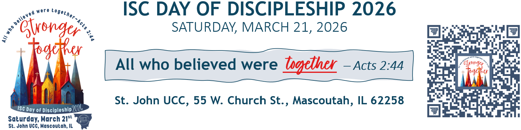 Drawing inspiration from Acts 2, this year's Day of Discipleship serves as a profound reminder that, as disciples of faith, we are Stronger Together through sharing our distinctive talents, worshiping collectively, engaging in prayer and fellowship, song and Word. Workshop offerings will encompass a variety of areas, including worship, programming, leadership, and outreach. This shared journey in faith and community illustrates the remarkable power of unity and underscores how each of us contributes to uplift the Church. "That we may all be one."